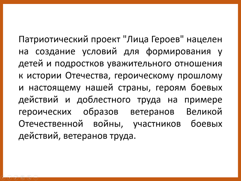 Основная цель проекта: создание условий для формирования у детей и подростков уважительного отношения к истории Родины, героическому прошлому и настоящему нашей страны, героям боевых действий и доблестного труда на примере героических образов ветеранов ВОВ, участников боевых действий, ветеранов труда.