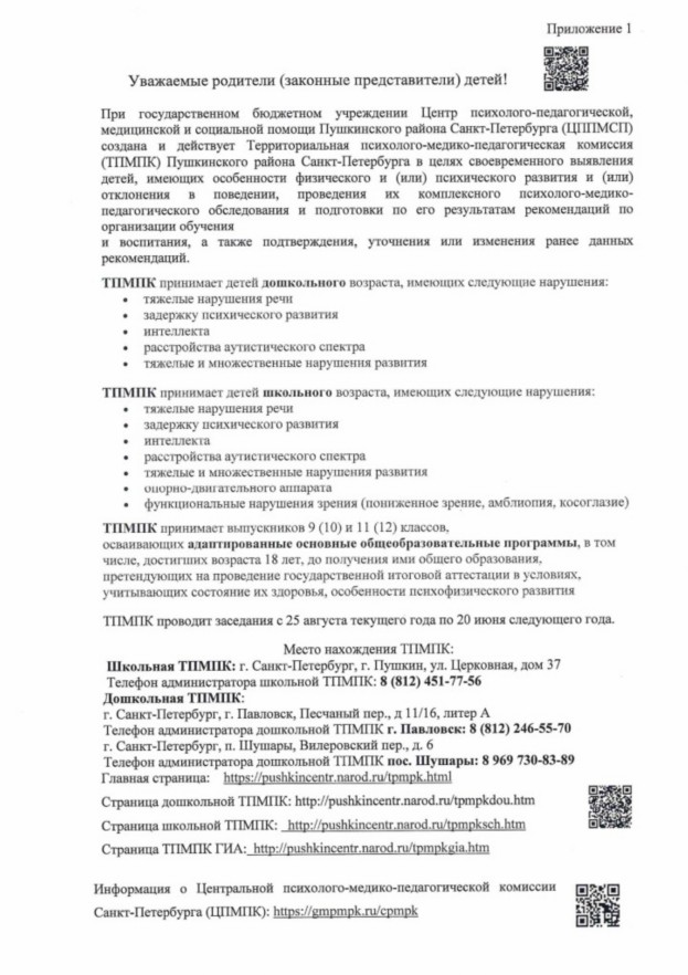 Информация о Центральной психолого-медико-педагогической комиссии Санкт-Петербурга (ЦПМПК): https://gmpmpk.ru/cpmpk