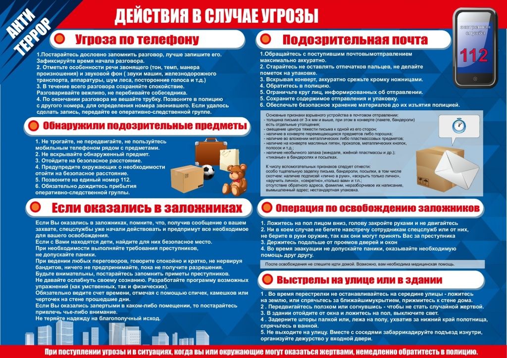 своевременное информирование населения о том, как вести себя в условиях угрозы совершения террористического акта;