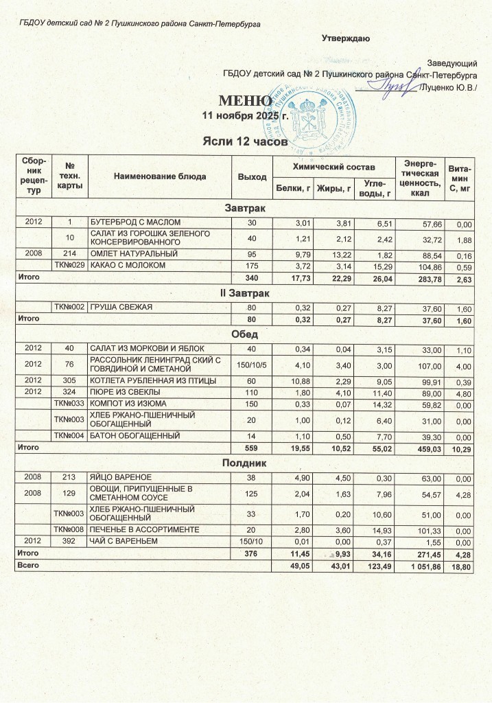 Меню на 11 ноября 2025 года