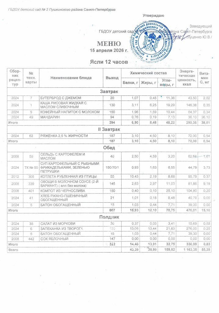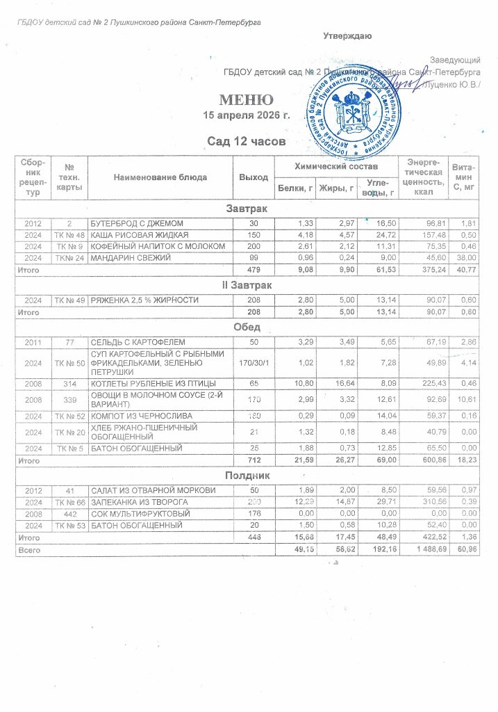 Меню на 15 апреля 2026