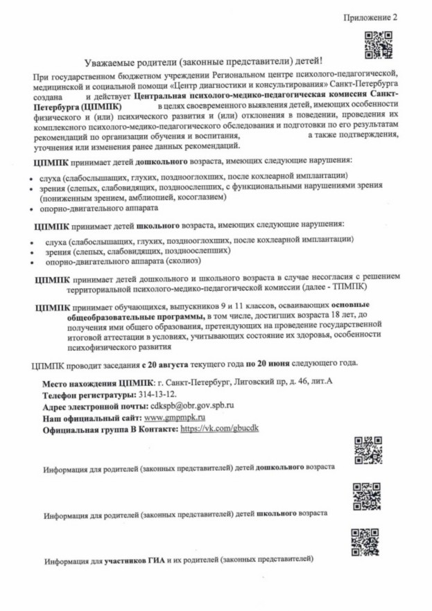 Информация о Центральной психолого-медико-педагогической комиссии Санкт-Петербурга (ЦПМПК): https://gmpmpk.ru/cpmpk